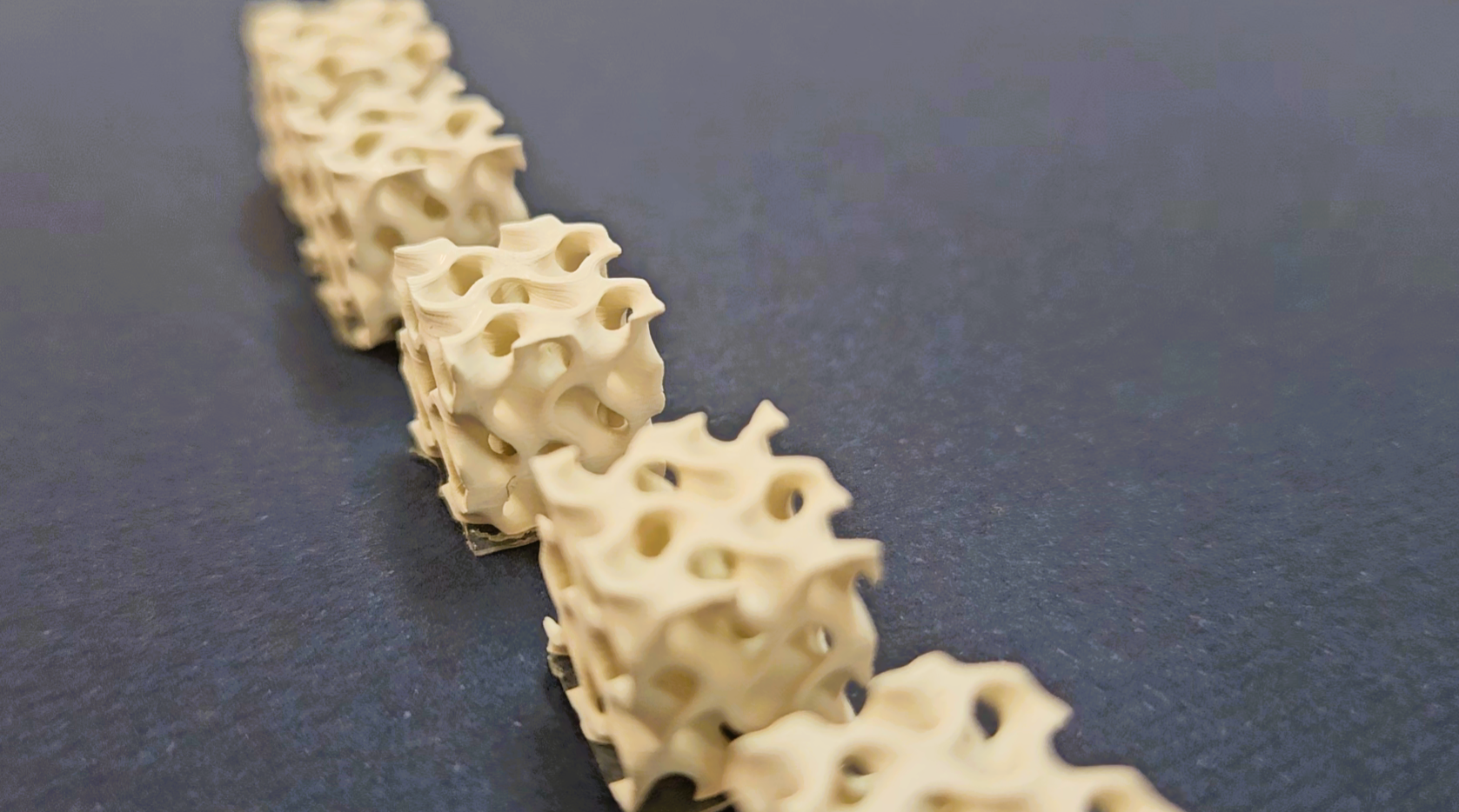W projekcie wykorzystujemy bioceramikę opartą na tlenku cyrkonu, znaną z wyjątkowej wytrzymałości mechanicznej i odporności na ścieranie. Kość nie jest jednorodna – ma złożoną, porowatą budowę. Staramy się naśladować naturę, aby implant funkcjonował tak dobrze, jak naturalna tkanka kostna. Druk 3D pozwala nam projektować gradientową porowatość i odwzorowywać strukturę wewnętrzną kości z niezwykłą precyzją.