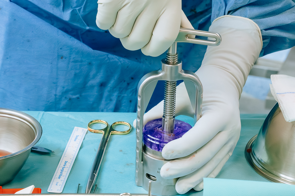 Tymczasem w Lublinie zespół z Klinicznego Oddziału Ortopedii i Traumatologii podjął się pionierskiej operacji, w której zastosowano tzw. przeszczep autologiczny, czyli własne ścięgno pacjenta. Materiał pochodził z długiej głowy mięśnia dwugłowego ramienia – popularnie zwanego bicepsem. Po pobraniu został on spłaszczony specjalną prasą do postaci cienkiej membrany, a następnie wszczepiony w miejsce uszkodzonego ścięgna stożka rotatorów.